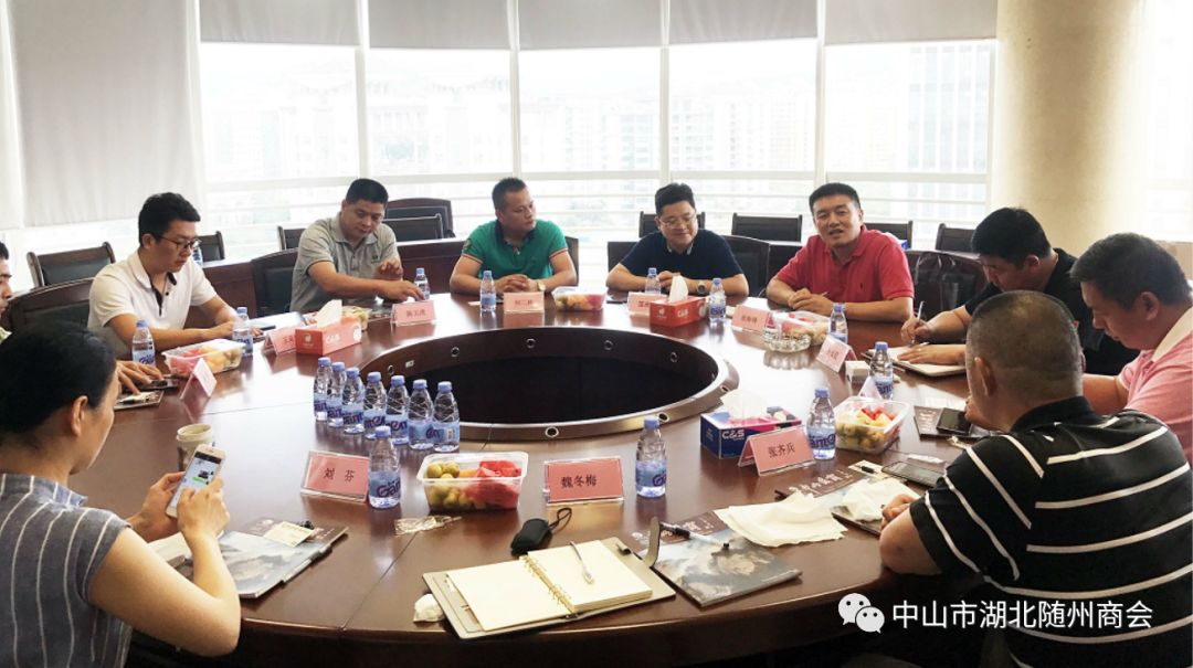 2018年7月31日下午3点, 中山市湖北随州商会会长张海锋、常务副会长何二林、秘书长施朝相、会员王亚伦律师等前往中山市安徽商会拜访交流,得到了中山市安徽商会匡光文常务副会长、秘书长孙长征和理事张齐兵、陈玉虎、会员曹方楠等热情接待及亲切的交流。